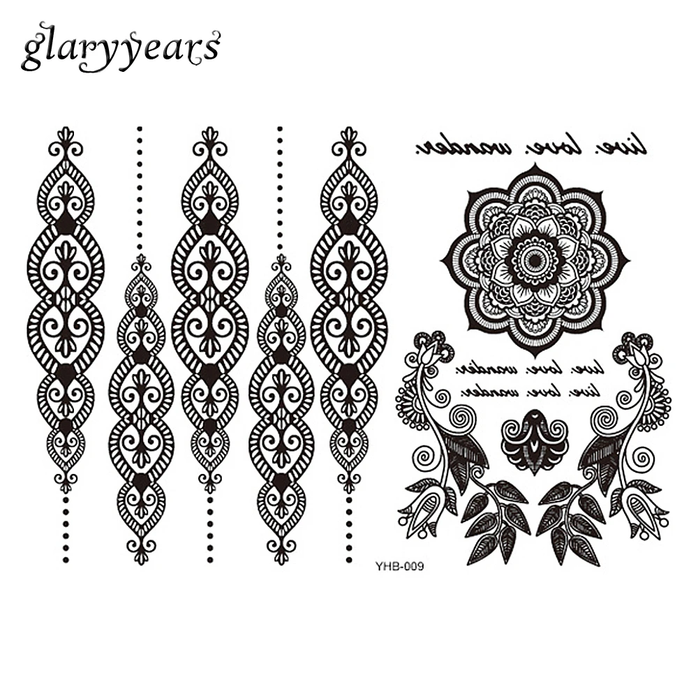 1 Piece Classique Noir Fleur Dentelle Faux Bijoux Tatouage Byhb 009 Corps Colonne Vertebrale Art Temporaire Impermeable Mot Tatouage Autocollant Pour Les Femmes Aliexpress