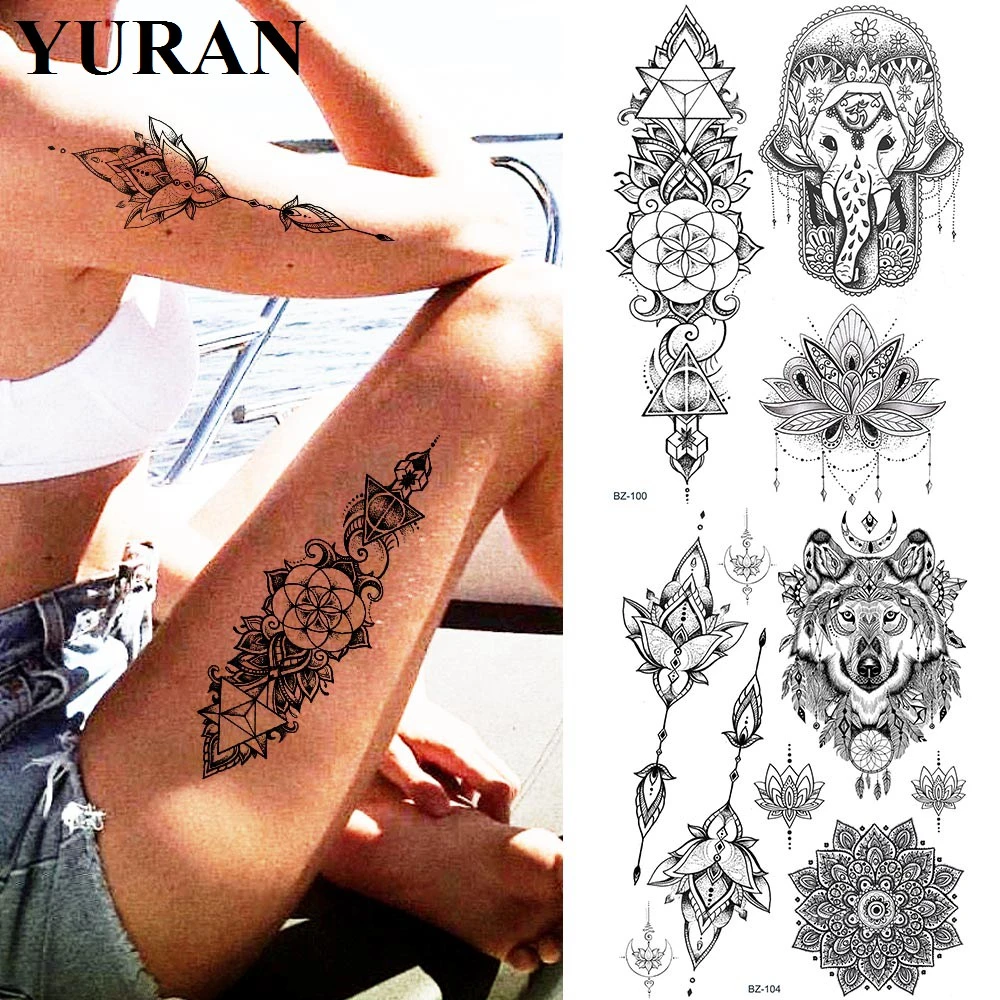 Yuran Bracelet Brassard Noir Inde Genasha Lotus Faux Tatouages Temporaire Femmes Jambe Bras Tatouage Autocollant Impermeable Corps Tatto Decalque Aliexpress