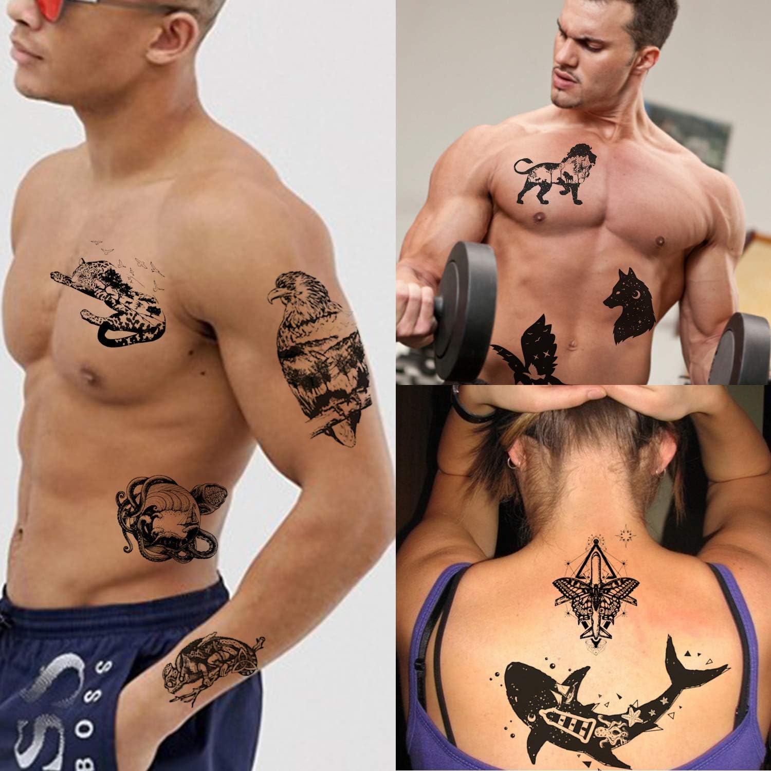Konsait 6 Feuilles Noir Autocollants Tatouage Temporaire Pour Adulte Fomme Femme Animal Loup Tigre Lion Crane Papillon Dragon Hibou Tatouage Ephemere Fomme Faux Corps Bras Poitrine Epaule Tatouages Amazon Fr Beaute Et Parfum