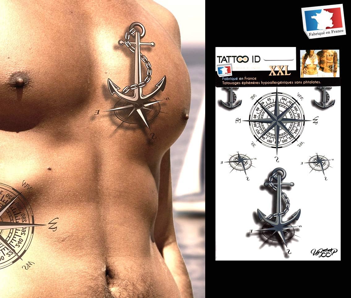 Tatouage Ephemere Temporaire Homme Marins Ancre Rose Des Vents Tattoo Id Xxl Hypoallergenique Fabrique En France 1 Planches 22cm X 14 5cm Homme Femme Amazon Fr Beaute Et Parfum