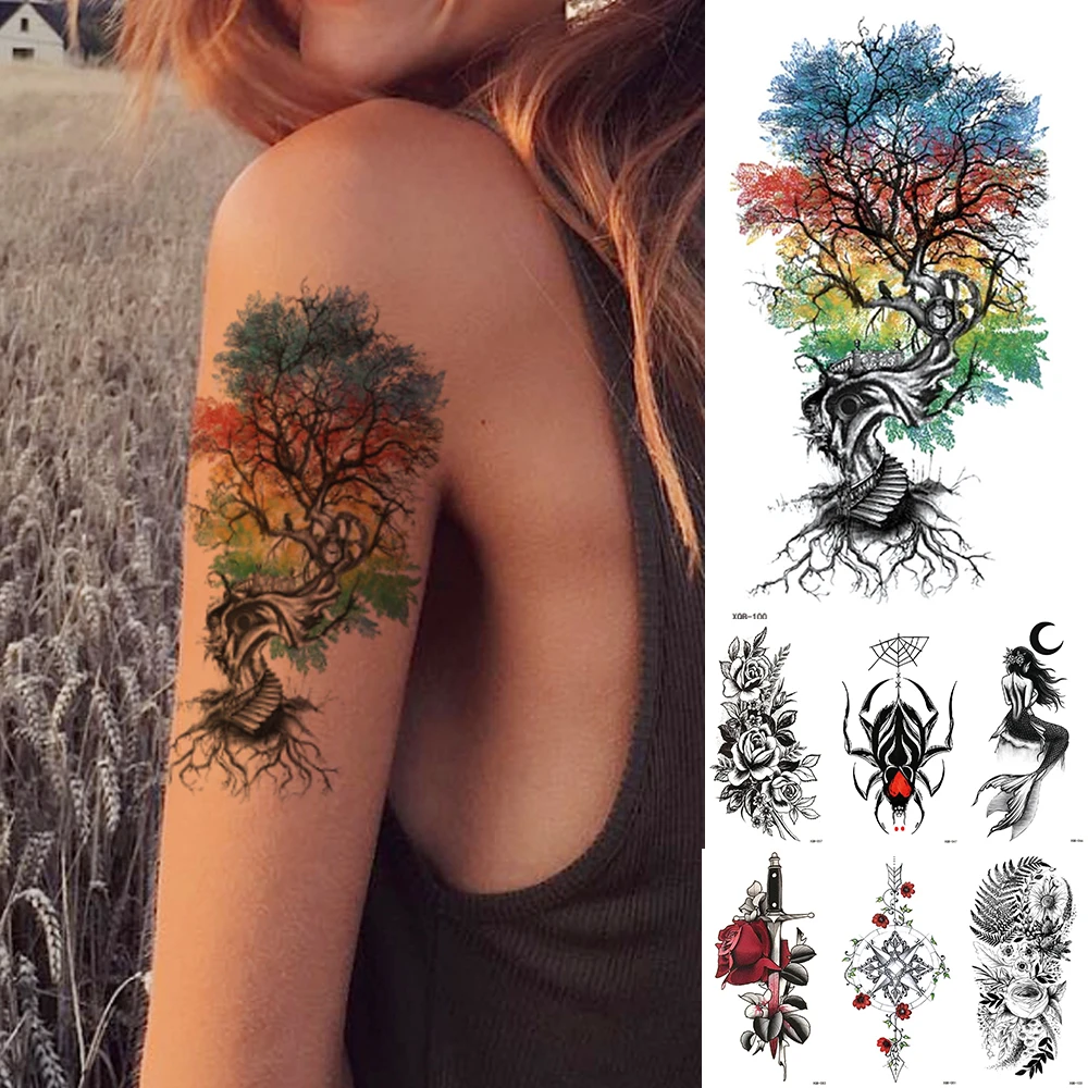 Autocollant De Tatouage Temporaire En Forme D Arbre A Echelle Faux Tatouage Flash Impermeable Araignee Rose Epee Sirene Bras D Art Corporel Pour Femmes Et Hommes Aliexpress