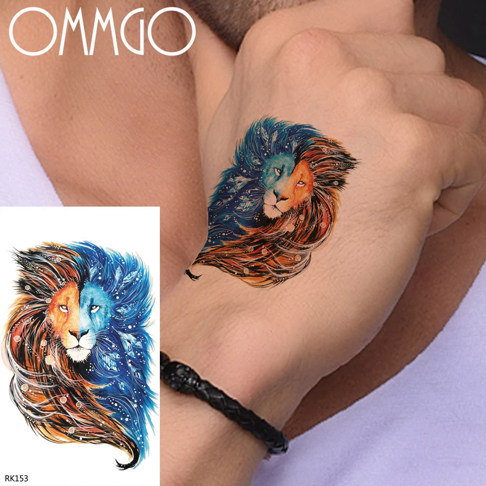 Ommgo Autocollant De Tatouages Temporaires Lion Galaxy Faux Tatouages Colores Pour Hommes Et Femmes Bras D Art Corporel Bleu Etanche Aliexpress