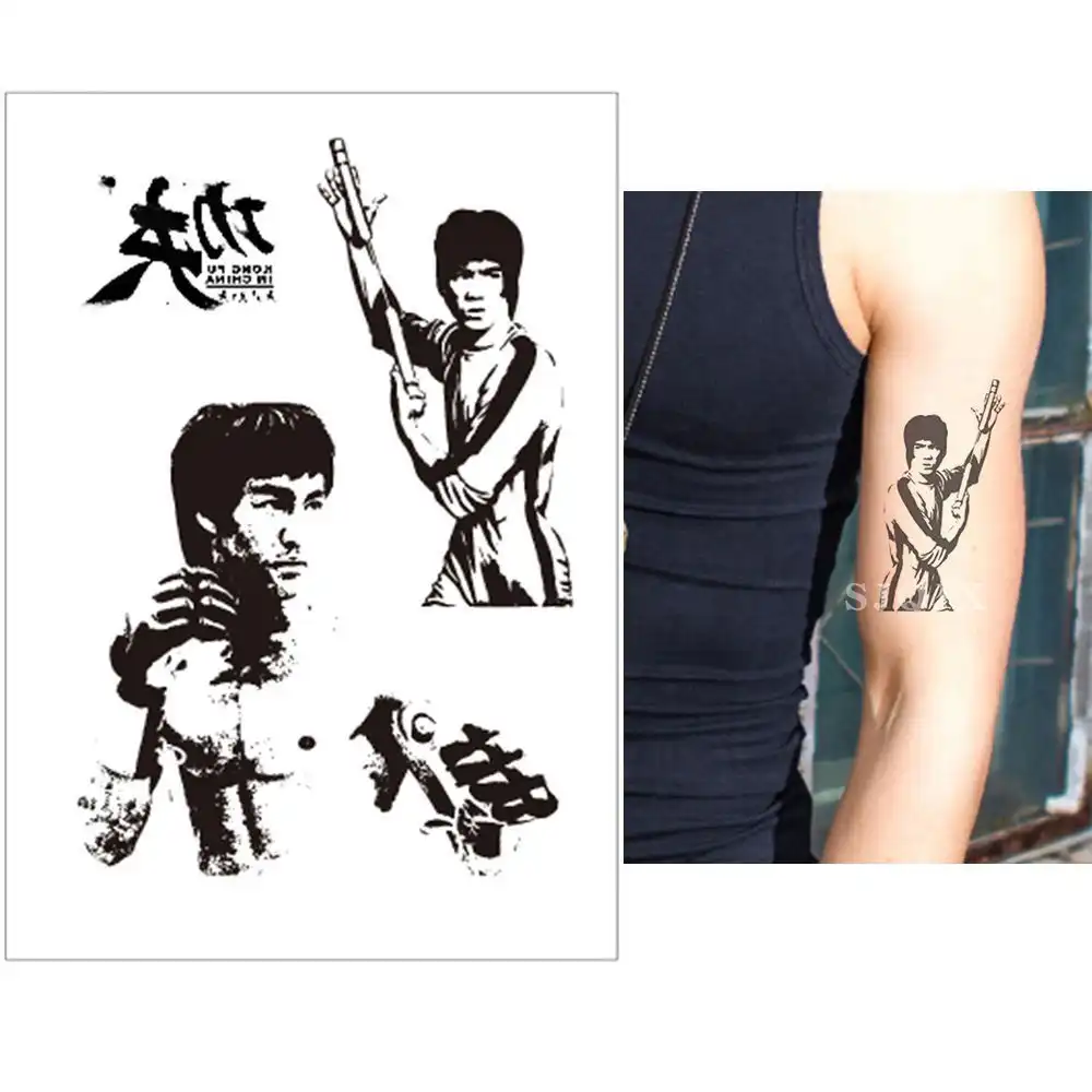 Faux Tatouage Temporaire Noir Autocollant De Fleur Aquarelle Kung Fu Chinois Bruce Lee Pour Hommes Et Femmes Art Corporel Aliexpress