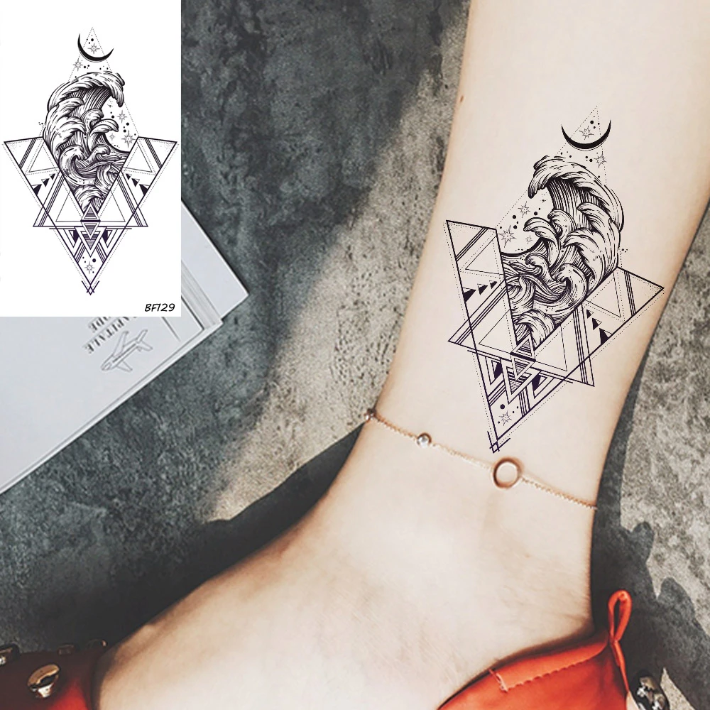 Vankirs Triangle Mer Vague Lune Tatouages Temporaires Pour Fille Femmes Impermeable Faux Noir Tatouages Geometrique Autocollant Surf Hommes Art Aliexpress
