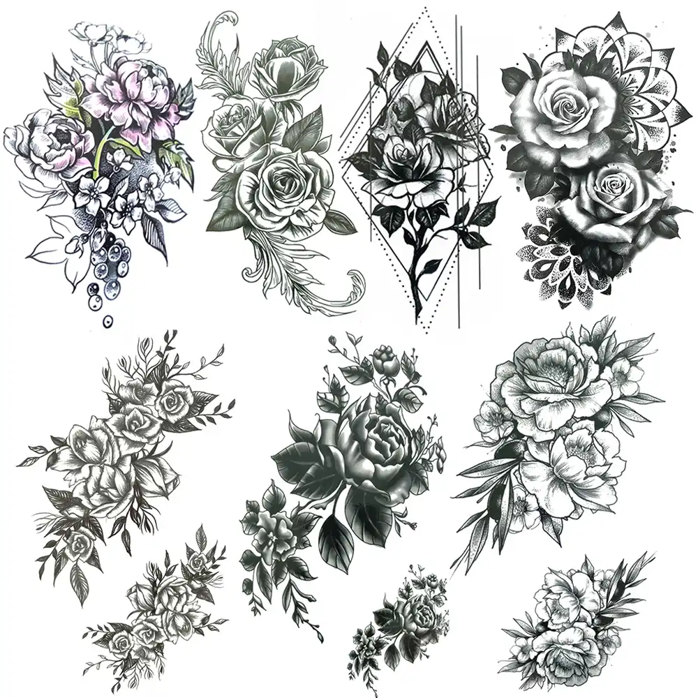 1 Pieces Faux Tatouages Temporaires Autocollants 3d Rose Fleurs Bras Epaule Cuisse Tatouage Impermeable Pour Les Femmes Aliexpress
