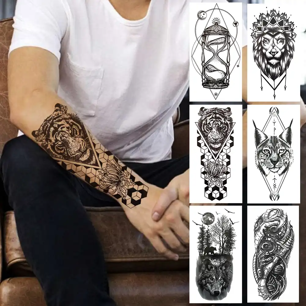 Geometrique Tigre Tatouage Temporaire Pour Hommes Femmes Foret Noire Loup Lion Hibou Tatouages Autocollant Bras Robotique Faux Tatoo Corps Art Mains Aliexpress