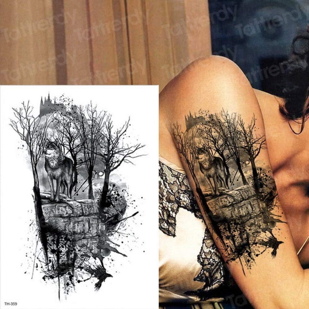 Adgkitb 3pcs Tatouages Temporaires Impermeables Hommes Tatouage Foret Loup Tatouage Th359 21cmx15cm Amazon Fr Cuisine Maison