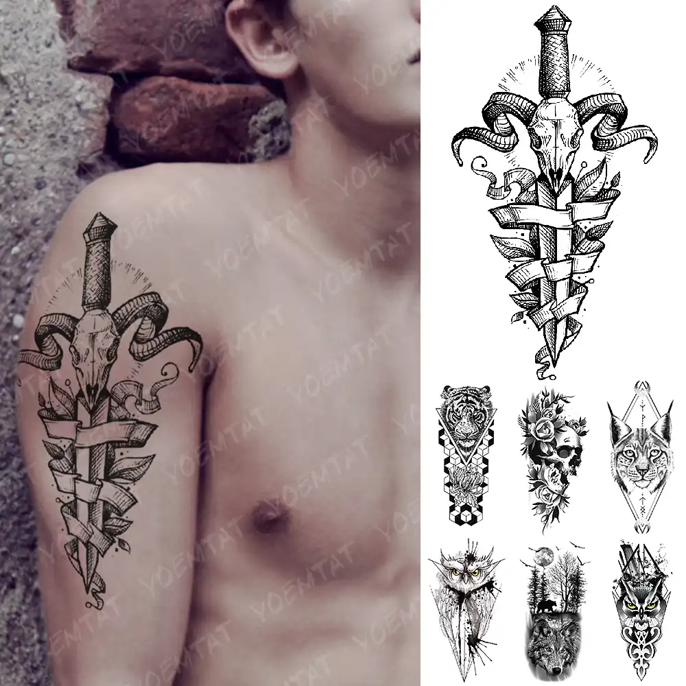 Impermeable A L Eau Temporaire Tatouage Autocollant Chevre Epee Crane Flash Tatouages Lucifer Hibou Loup Demon Corps Art Bras Faux Tatoo Femmes Hommes Aliexpress