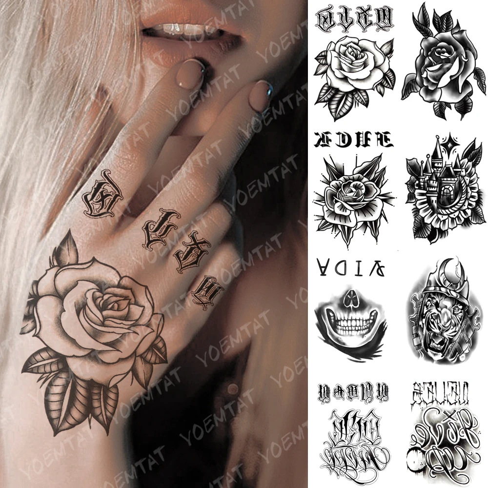 Main Tatouage Autocollant Faux Noir 3d Henne Rose Fleur Loup Crane Joker Cosplay Pour Femme Homme Bras Cheville Impermeable Temporaire Tatouage Aliexpress