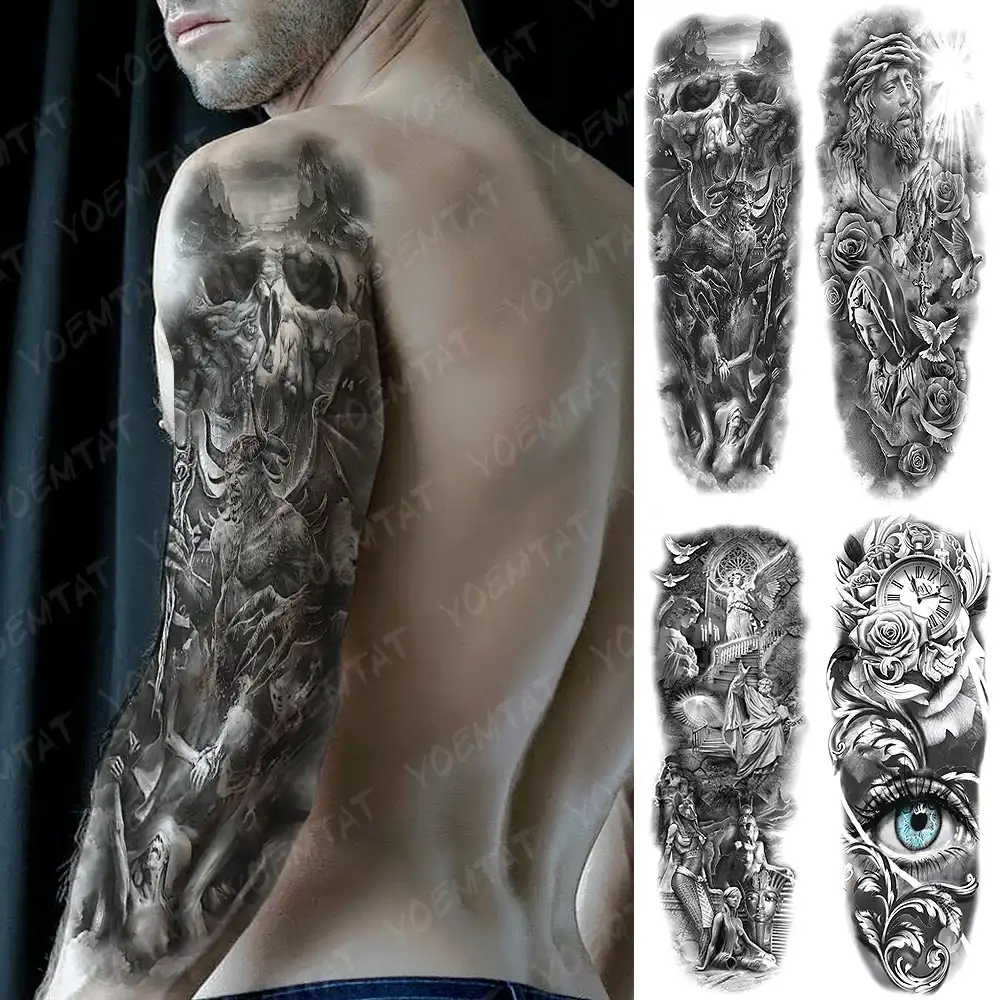 Grand Bras Manches Tatouage Enfer Diable Satan Lucifer Impermeable Temporaire Tatto Autocollant Priant Ange Art Corporel Complet Faux Tatoo Hommes Aliexpress