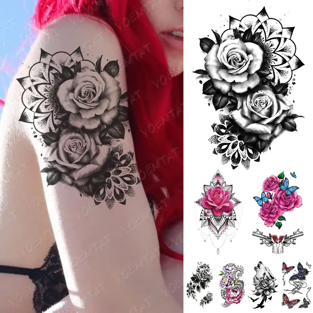 Tatouage Temporaire Impermeable Autocollant Mandala Henne Flash Fleur Rose Art Corporel Transfert D Eau Bras Faux Tatouage Pour Femmes Et Hommes Aliexpress