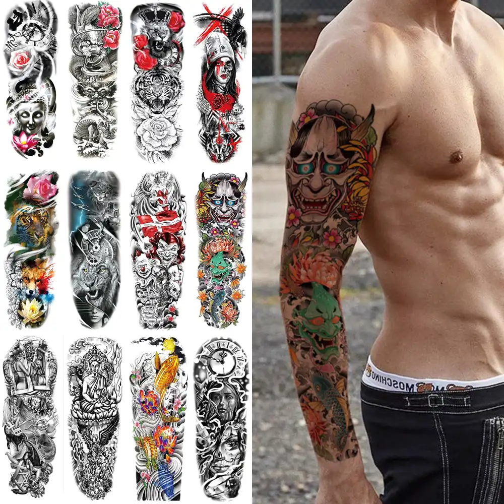 Tatouage Temporaire A Manches Larges Pour Hommes Et Femmes Grand Autocollant De Bras Totem Complet Resistant A L Eau Motif Tete De Mort Aliexpress