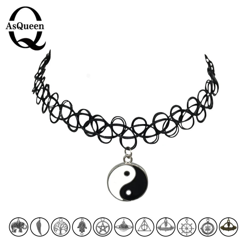 Yin Yang Collier Ras De Cou Pour Femmes 12styles De Tatouage A La Mode Croix D Arbre De Vie Bijoux Vente En Gros Cadeau De Noel Aliexpress